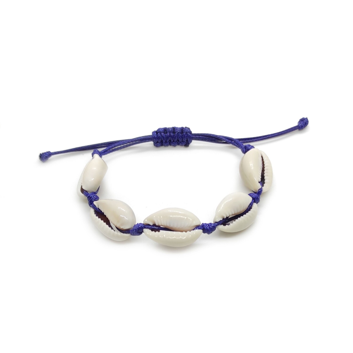 This bracelet contains cowrie shells made with a blue cord string. The cowrie shells represent protection, destiny and prosperity.